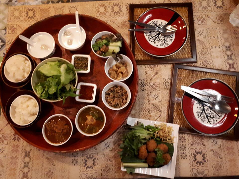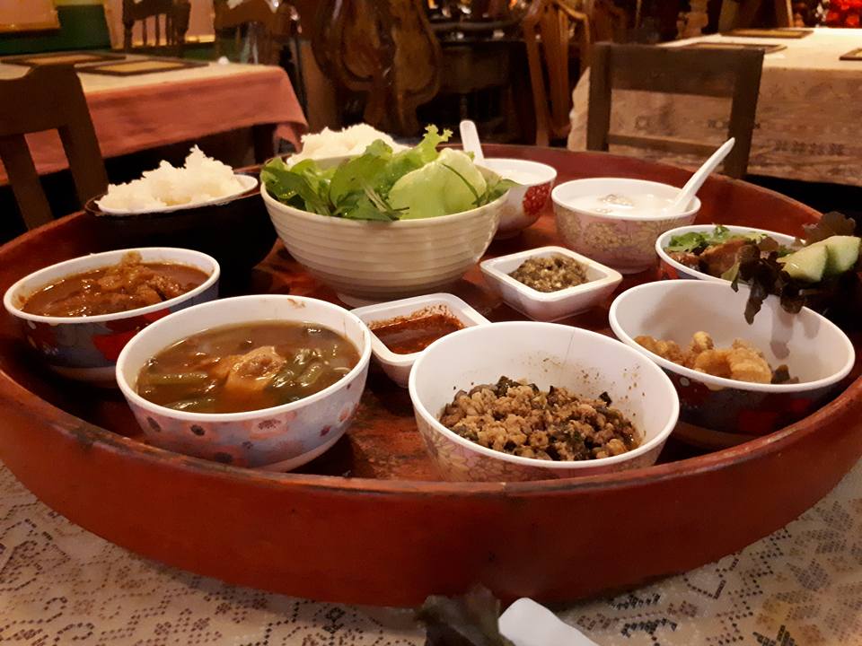 (ชุดขันโตก 380 บาทค่ะ มีลาบคั่ว แกงฮังเล แกงแค แค็ปหมู น้ำพริก 1 อย่าง ผักสด ข้าวเหนียว และกล้วยหอมบวดชี)