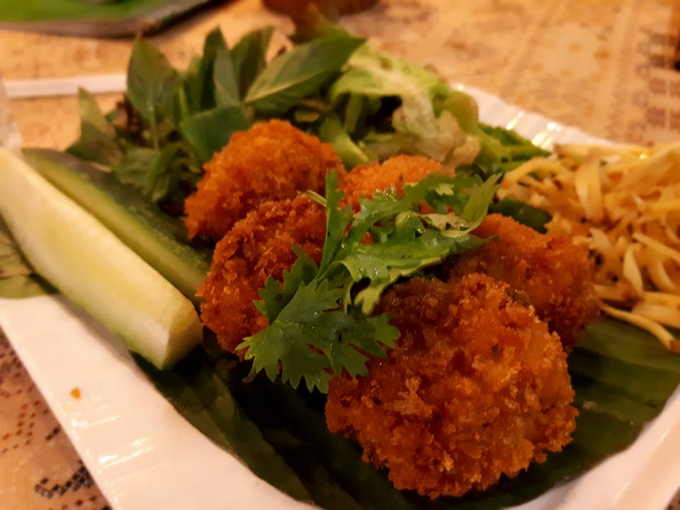 (อันนี้ดีสุดค่ะ อร่อยอยู่ แหนมเฮือนเพ็ญ เป็นแหนมหมูชุปเกล็ดขนมปังทอด แกล้มกับพริกสด และขิงสดซอยหยาบ)