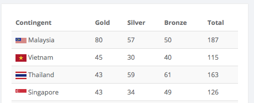 จนถึงวันนี้ค่อนข้าง surprise เล็กน้อยที่ตารางรวมเหรียญเวียดนามอยู่ที่3 เพราะใน10กว่าปีที่ผ่านมา ต้องยอมรับว่าเวียดนามพัฒนาด้านกีฬามาอย่างมาก กล้าพูดได้เต็มปากว่าในซีเกมส์คือเบอร์2 ของอาเซียนแบบแซงอินโ