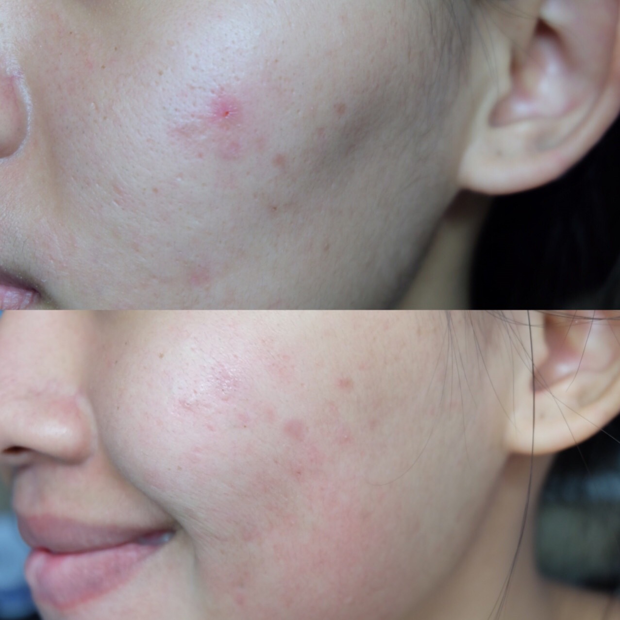 ดูจากรูปนะค่ะ รอยดูเป็นแผลที่เยิน 5555 เกิดจากความมือบอนที่ชอบไปแกะเกา แต่พอหลังจากใช้ Fiore Moisture - Riched Brightening Essence จะเห็นเลยว่ารอยดูจางลงไปมาก จะเหลือแค่รอยจุดดำๆ รูขุมขนดูกระชับขึ้นด้วยยยย