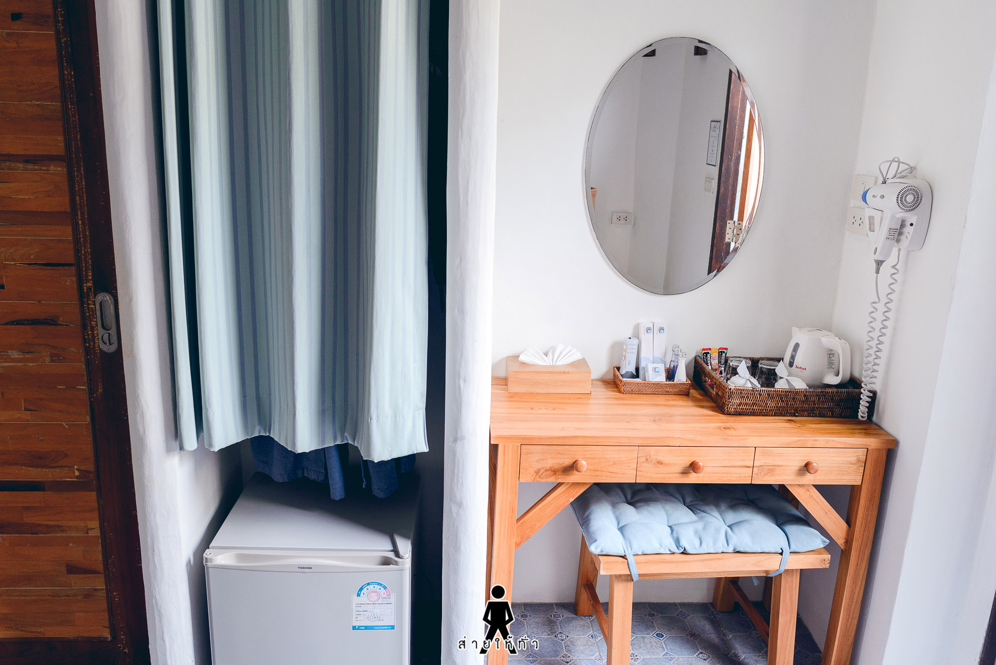 หันกลับมาภายในห้องเดียวกันนั้น ก็มี...ตู้เสื้อผ้าแบบบิ้วอิน ตู้เย็น และโต๊ะเครื่องแป้งนั่นเอง