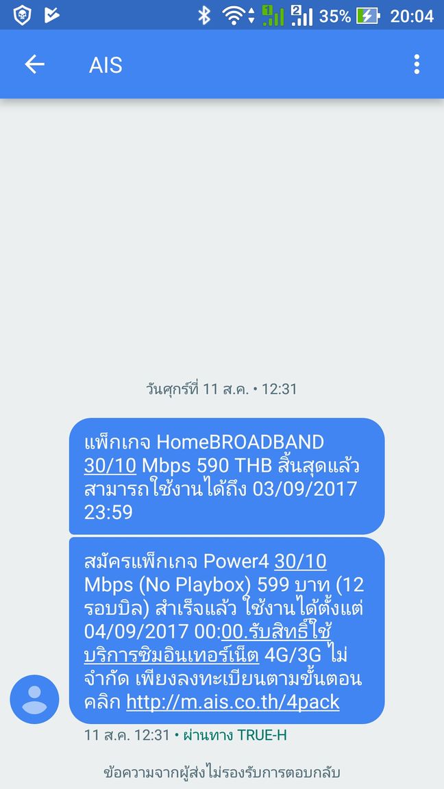สอบถามเรื่องแพ็คเกจ Ais