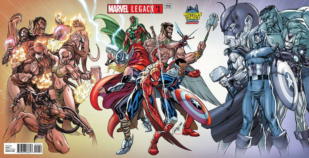 และผู้วาดปกสุดเทพ J. Scott Campbell ก็ไม่พลาดที่จะวาดปก Variant ให้ในโอกาสพิเศษแบบนี้ มีกลุ่มอเวนเจอร์สยุคล้านปีก่อนคริสตกาล อเวนเจอร์สรุ่นปัจจุบัน และอเวนเจอร์สรุ่นก่อตั้ง (สตีฟไม่ใช่ซักหน่อย แต่ช่างเถอะ)