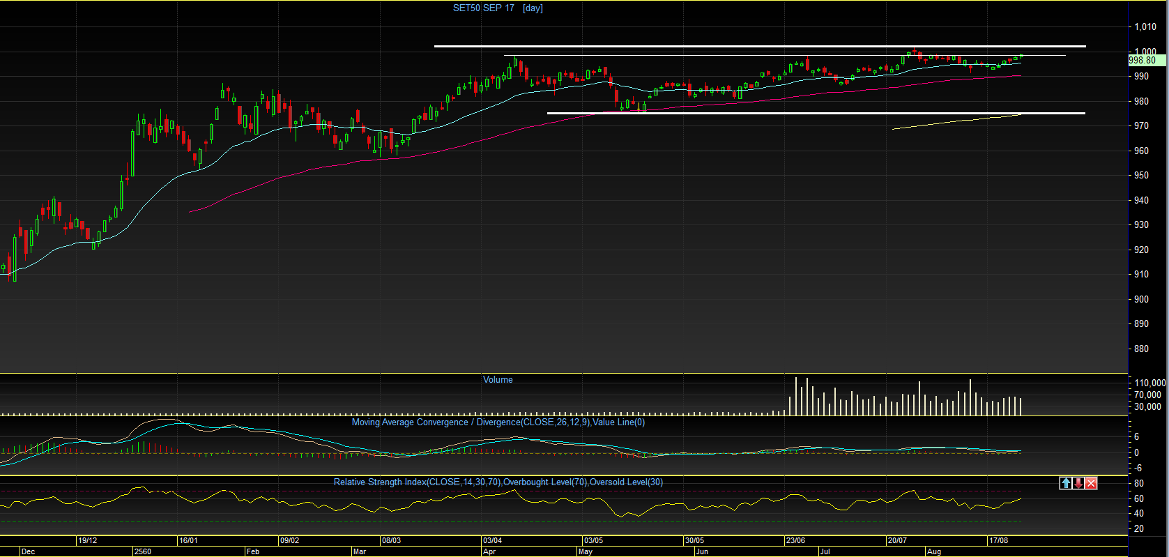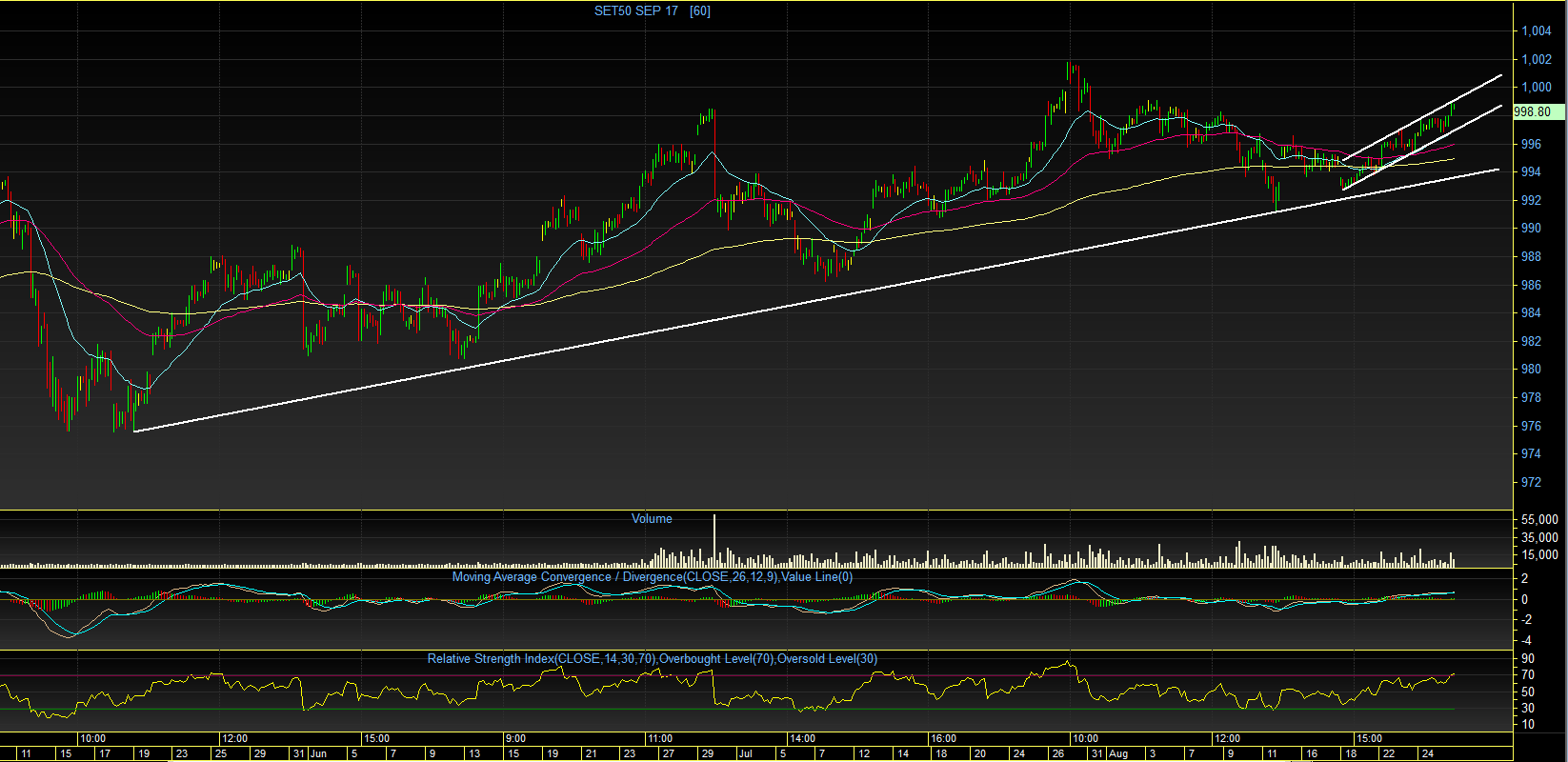 ระดับ 998.9 จุด ได้อีกครั้ง แต่ก็ยังไม่ทะลุผ่านขึ้นไปได้ อย่างไรก็ตาม ถ้าหากวันนี้ ดัชนี สามารถ Break แนวต้าน 1001.8 จุด ขึ้นไปได้