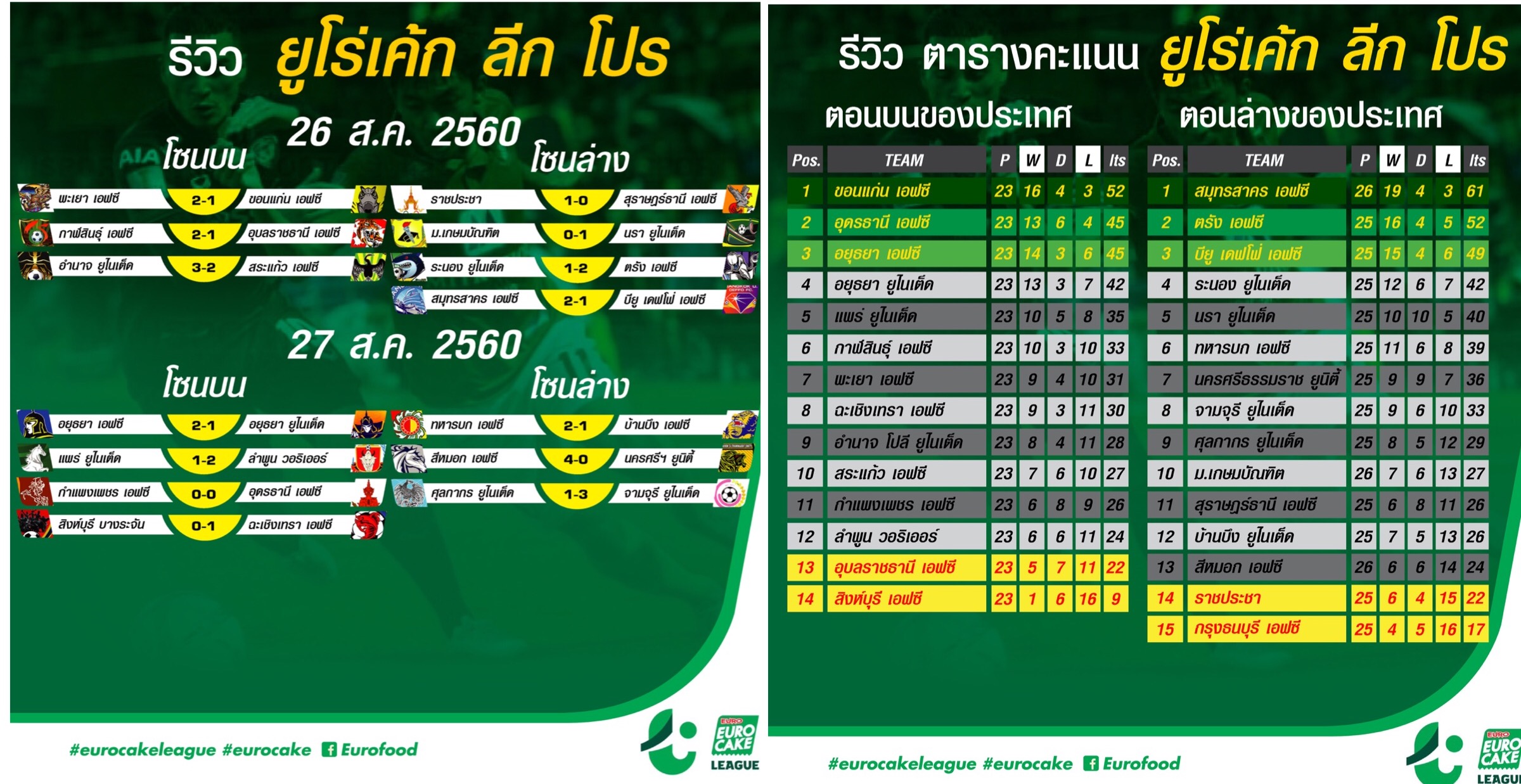 ขอบคุณข้อมูลจาก ยูโร่เค้ก ลีก ผู้สนับสนุนฟุตบอล ยูโร่เค้ก ลีก โปร และ ยูโร่เค้ก ลีก อย่างเป็นทางการ
