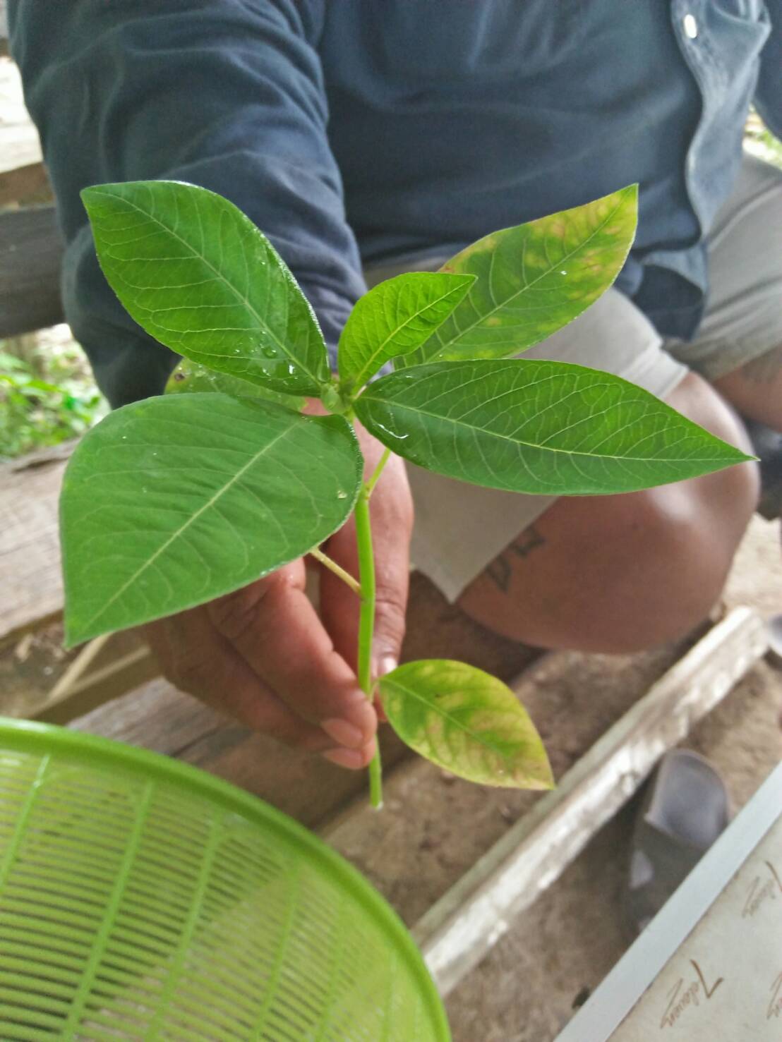 เป็นต้นไม้จากประเทศจีน มีใบห้าแฉก คล้ายต้นกัญชา แต่ไม่ใช่ต้นกัญชานะครับ ใบจะมีกินเฉพาะ ของมันเอง บางคนบอกคล้ายกลิ่นกะเพรา ดอกจะเป็นช่อสีฟ้าๆ ดอกเล็กๆ ผมตามหามาน