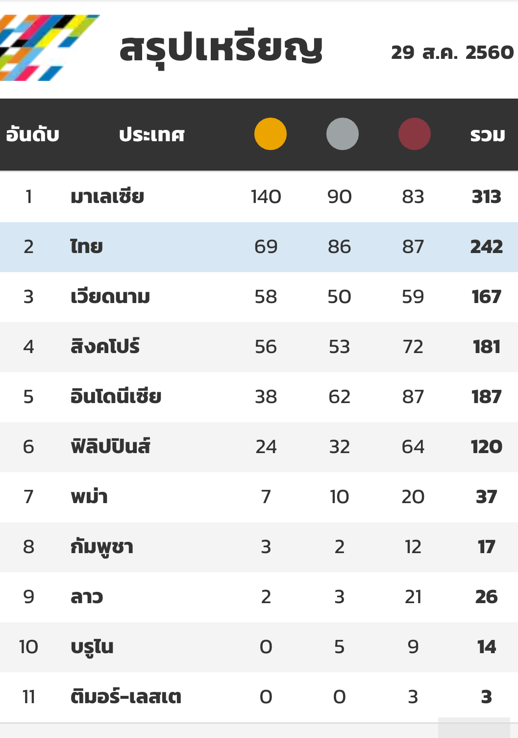 ไปแข่งกีฬาอาเซียน ถ้าไม่ใช่ประเทศ ลาว กัมพูชา บรูไน ไทยมีหน้าที่หลักอย่างหนึ่งคือการชิงเจ้าเหรียญทองกับประเทศเจ้าภาพ แพ้ฟิลิปปินส์ มาเลเซีย ก็เคยมาแล้ว เวียดนาม อินโดนีเซีย ก็คู่รักคู่แค้น พอย้ายไปแข่