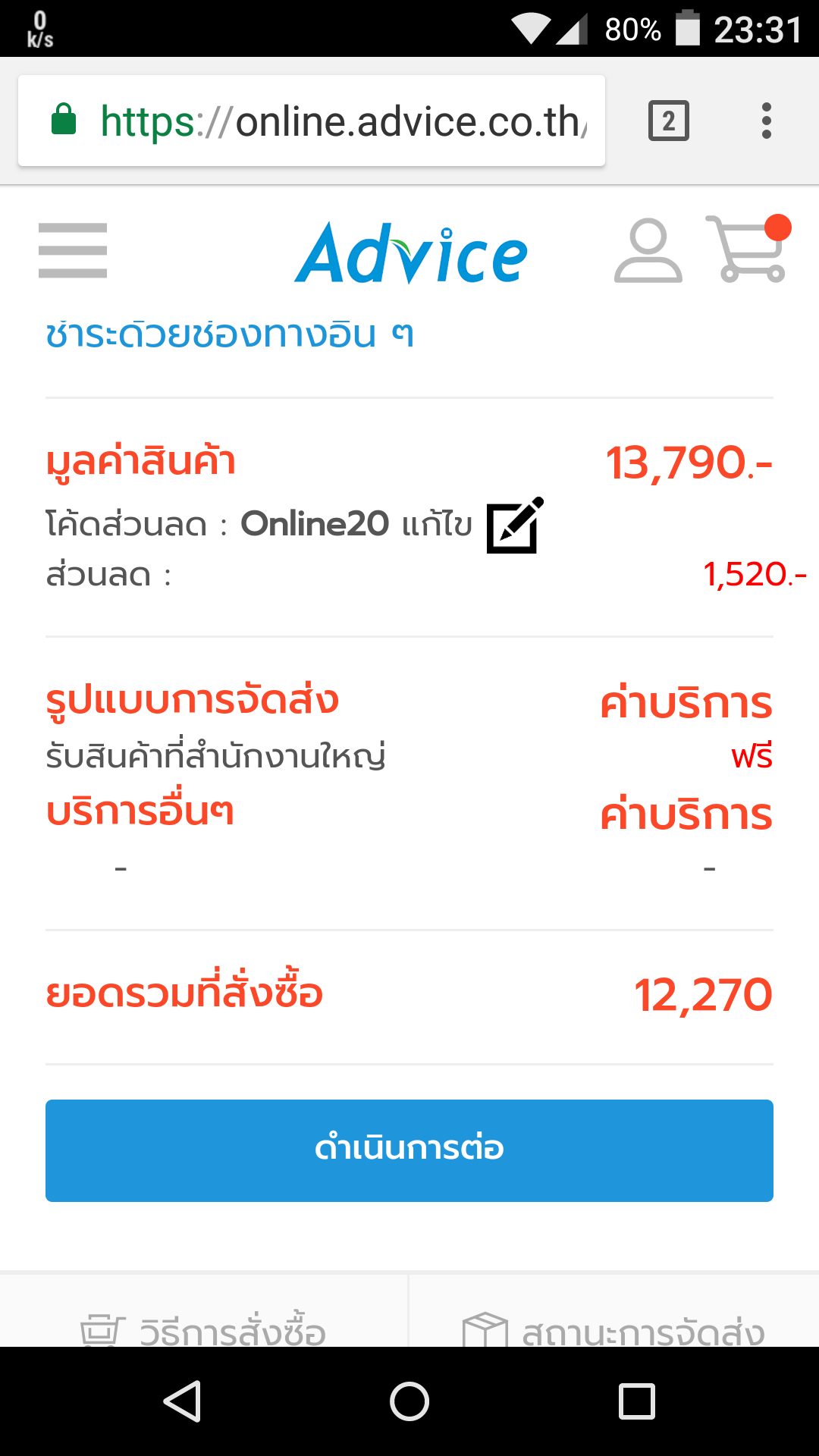 เห็นadvice online กำลังลดราคาสูงสุด20% เลยลองกดเข้าไปดูได้mi6 รุ่น64GB ราคา 13,790฿ กดได้ส่วนลด1,520฿ คิดแล้วประมาณ11%