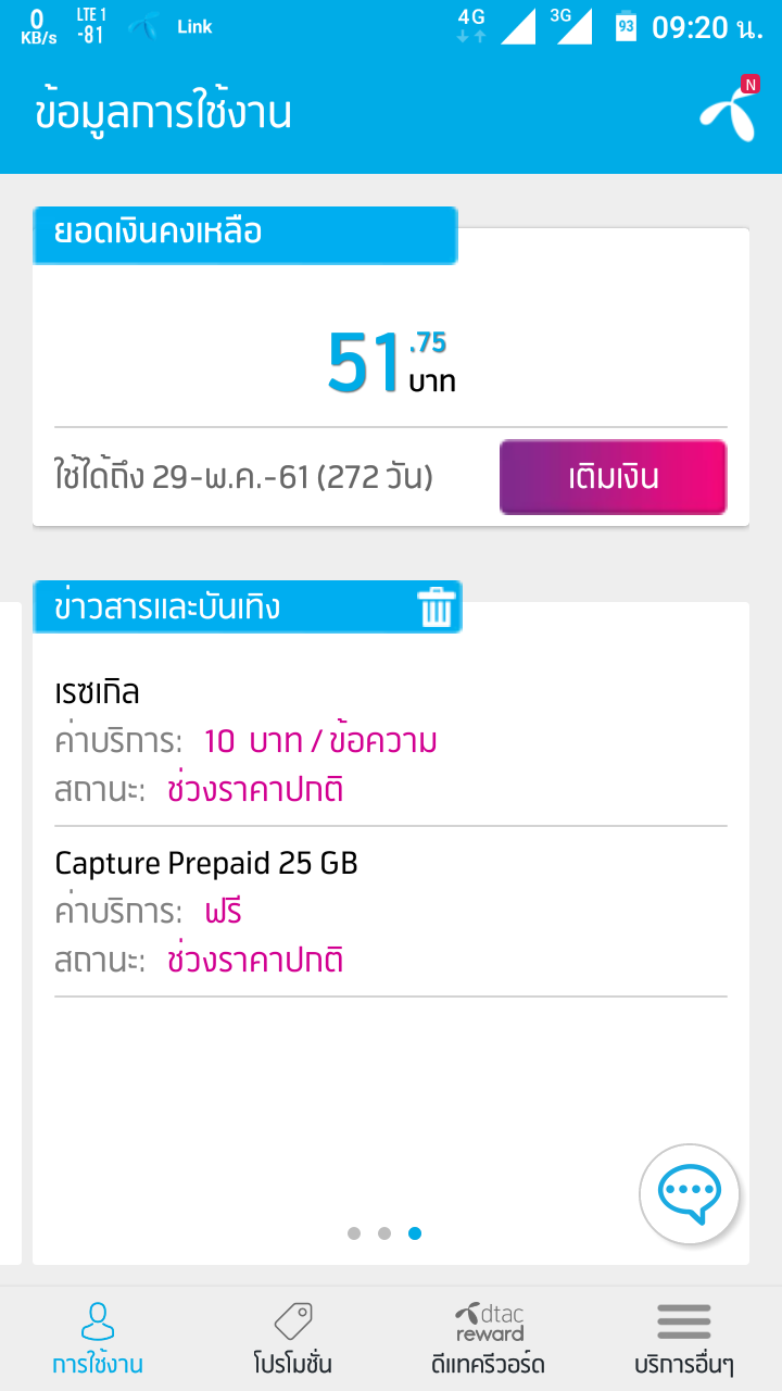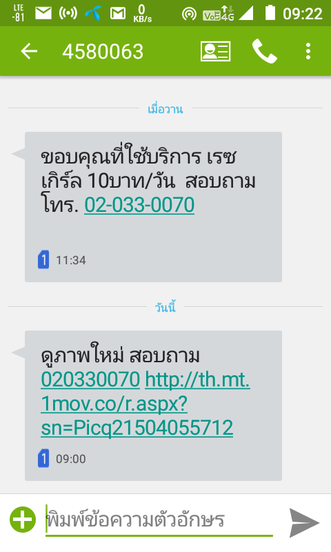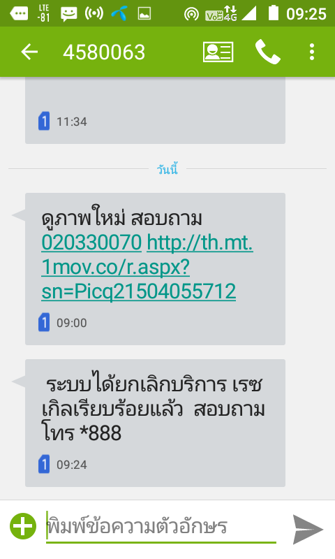 มือถือเครื่องนี้เอาไว้ปล่อย WIFI อย่างเดียว เมื่อเช้าเข้าไปอ่านข้อความก็เห็นมีข้อความบริการเสริมเรียกเก็บเงินเข้ามาที่ตัวเครื่อง เข้าไปตรวจสอบใน E-Service มีโดนหักเงินไปแล้ว 10 บาทตั้งแต่เมื่อวันที 29 สิงหาคม เลยโทร *137 ยกเลิกบริการเสริมไป