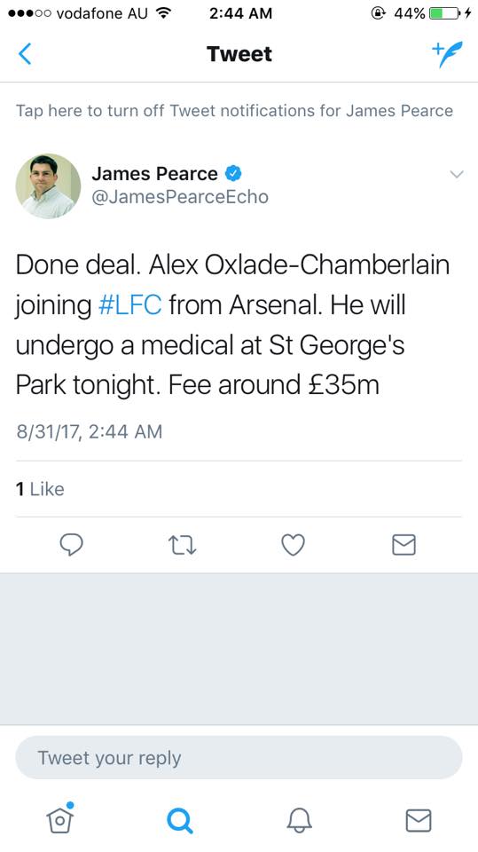 **** ลิเวอร์พูลตกลงค่าตัว Alex Oxlade-Chamberlain กับอาเซน่อลได้แล้วที่ 35 ล้านปอนด์ ****