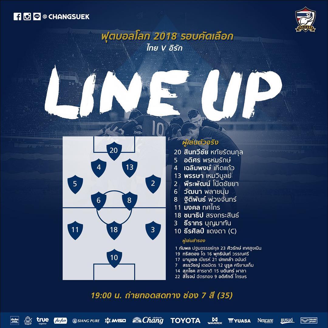 11 ตัวจริงทีมชาติไทยเจออิรักวันนี้มาเเล้ว