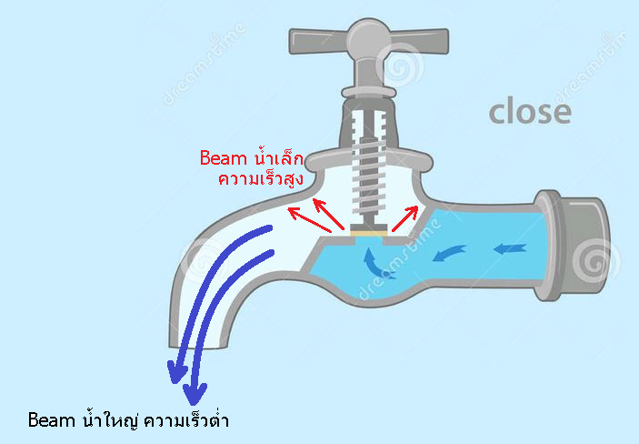 ก็จะพุ่งไปกระทบผนังด้านในแบบเส้นสีแดงในภาพครับ และ beam น้ำความเร็วสูงแต่ปริมาณน้อยนี้