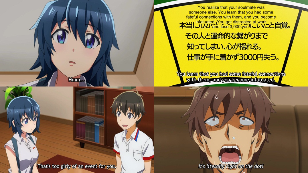 เล่นกันไปเรื่อยจนจิอากิเดินมาตกช่องที่บอกประมาณว่า "ได้รู้สึกตัวว่าคู่ชะตาฟ้าลิขิตนั้นเป็นคนอื่น มีชะตาต้องกันกับเขาคนนั้น"