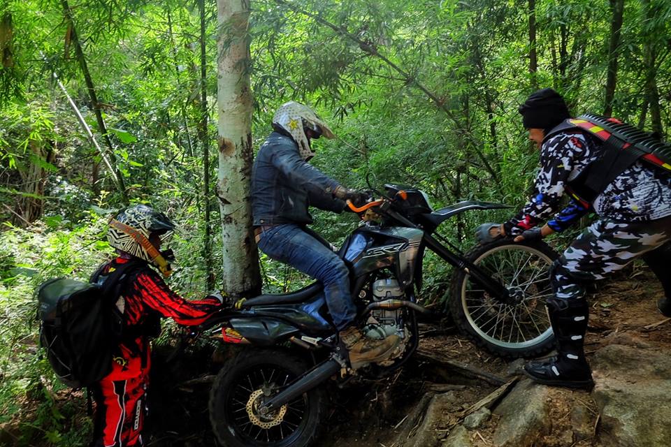 จะเห็นว่า แต่งตัวไม่เหมือนชาวบ้านเค้าใส่ชุดวิบากกันหมดทุกคน แต่โผมใส่ยีนส์จัดเต็ม แต่โลกของสองล้อไม่มีพรมแดน