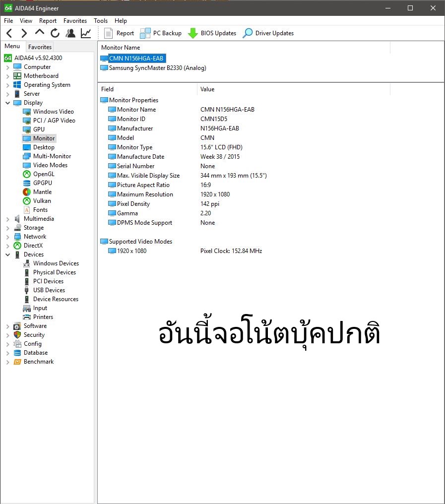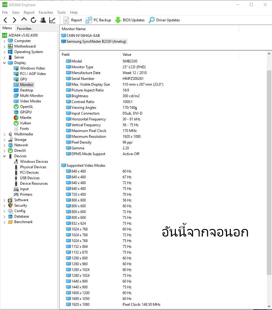 ทำไม Supported Video Modes ถึงขึ้นแค่อันเดียว(โน้ตบุ้ค) แต่ต่อจอนอกขึ้นหลายอันเป็นปกติ