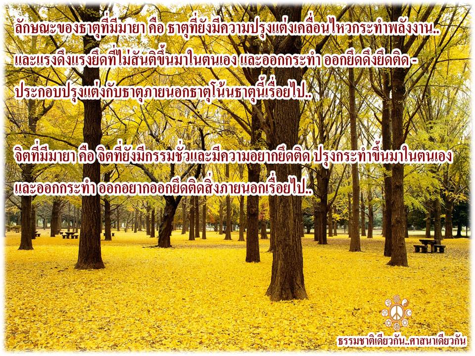 มายาของธาตุ คือ ความมีความเคลื่อนไหวกระทำและความยึดถือที่ไม่สันติปรุงแต่งกระทำขึ้นมาในตนเอง