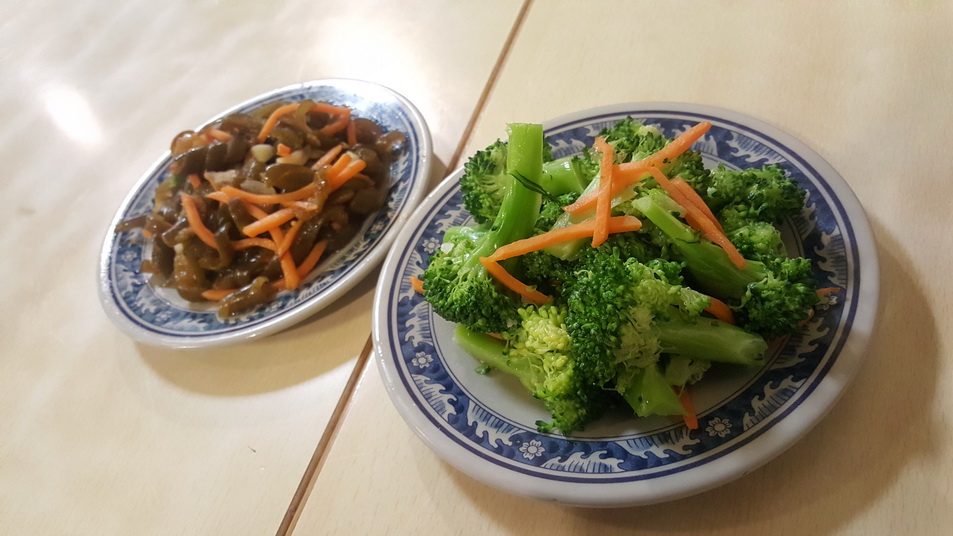 สังเกตว่าร้านที่ไต้หวันส่วนใหญ่จะมีเครื่องเคียงด้วย จะวางอาหารหลายๆ อย่างไว้มุมใกล้เคาเตอร์ อันนี้เราไปหยิบมากินได้เลยค่ะ แล้วค่อยจ่ายเงินทีเดียว มีอาหารน่ากินหลายอย่างเลย เฟิร์นเลือกมามีผัดบล็อกโคลี่กับสาหร่าย ราคาจำไม่ได้ แต่คาดว่าคงไม่แพงมากนัก