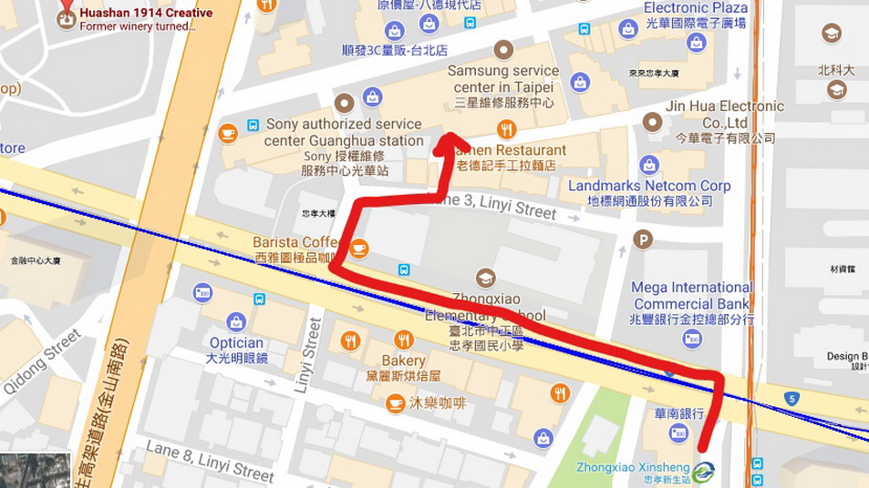 2. ผ่าน Zhongxiao Elementary School เดินต่อไปจะเจอร้าน Barista Coffee เดินเข้าไปแล้วเลี้ยวขวา