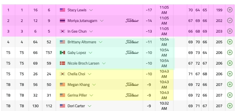 วันนี้ ห้องเชียร์สด ค่อนข้างคึกคักขึ้น เพราะสาวๆ ตื่นมาเชียร์หลายคนเลย ผลงานนักกอล์ฟสาวไทย ก็ไม่ได้เลวร้ายนัก ถึงจะไม่ได้เบอร์ดี้กันคนละมากๆ แต่ก็ไม่เสียกันคนละเยอะๆ เหมือนกัน ที่ออกไปจากสนามคนแรกคือ