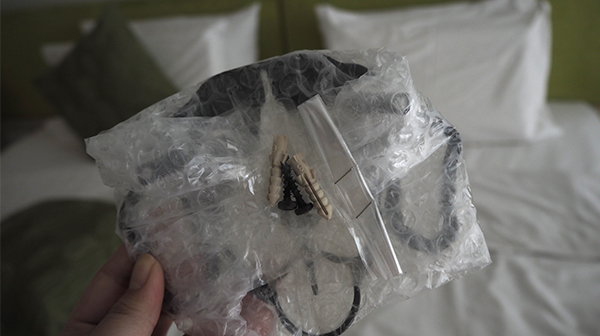 ดึงของออกมา ก็จะเจอบีเกิลน้อย ถูกห่อด้วยบับเบิลมาอย่างดีค่ะ