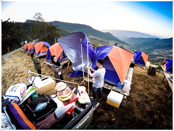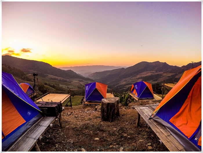 เรารีบกางเต้น ช้วยกันจัดแจง ที่พัก กางหลังคากันหน่อยน้ำค้างน่าจะแรง ช่วงว่างผมหนีไปเก็บภาพก่อนอาทิตย์ตก ส่วน คืนนี้ มีปิ้งย่าง มีดาวให้ชม นั่งจิบเหล้า บางๆ เช้ารอรถมารับขึ้นดอย