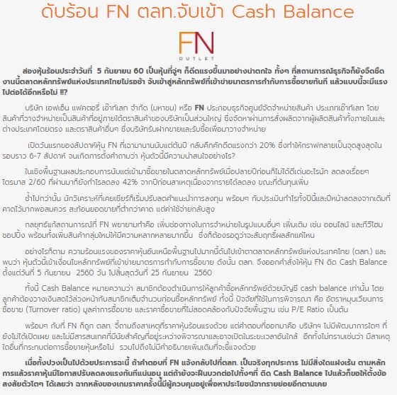 ดับร้อน FN ตลท.จับเข้า Cash Balance