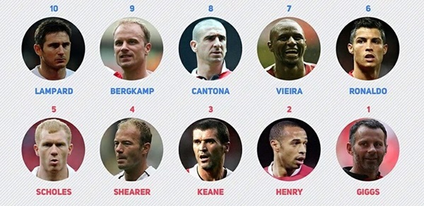 25 อันดับสุดยอดนักเตะแห่งศึกพรีเมียร์ลีก จัดอันดับโดย "