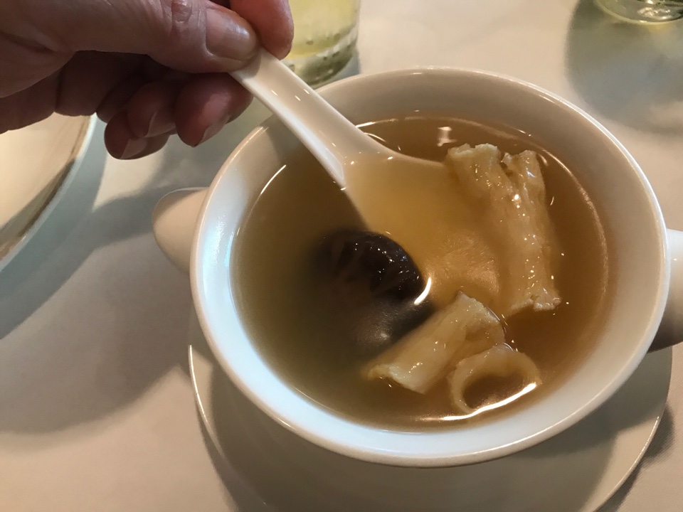 ซุปอีกแบบที่สั่งมา ซุปกระเพาะปลาสดเห็ดหอมน้ำใส อันนี้ดี ใช้กระเพาะปลาสด น้ำซุปเชงๆดี