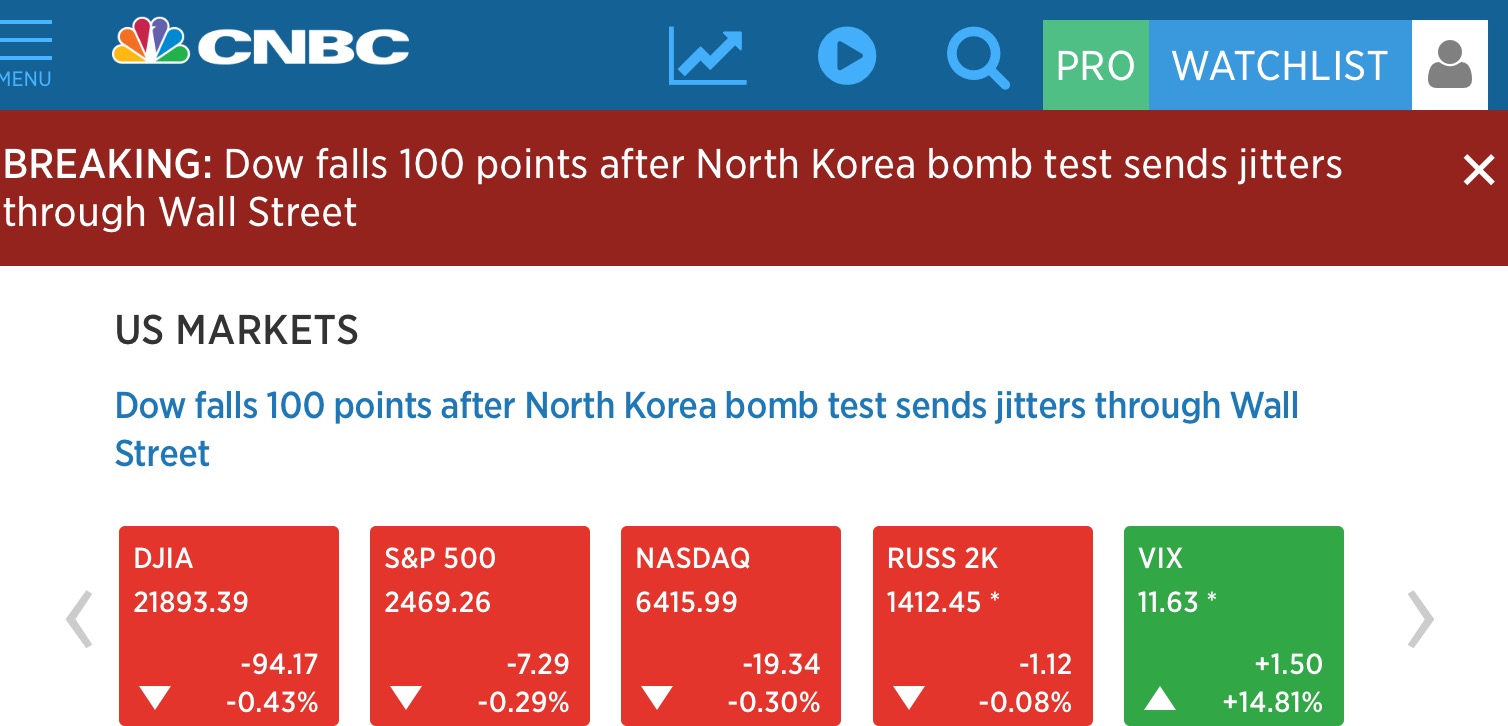 DOW เปิดมา -100 ให้เหตุผลว่า "กังวล เกาหลีเหนือ" !!