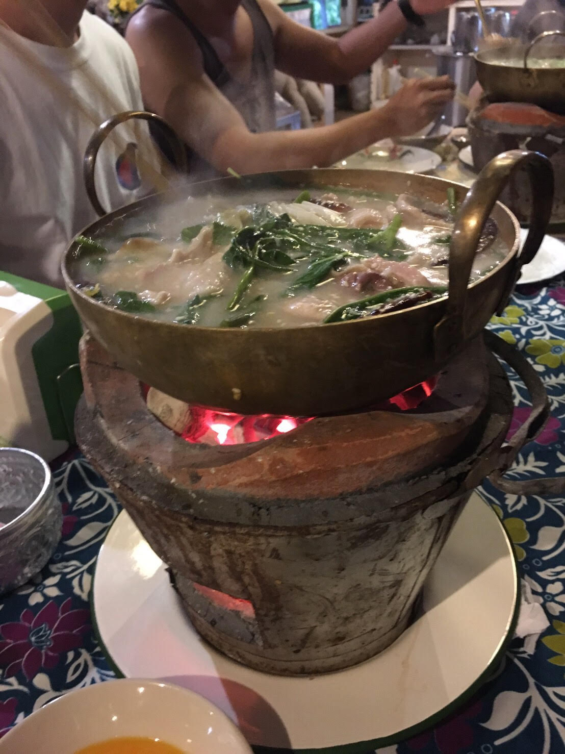 เอาของออกซะเหนื่อย หลับกันไปโดยไม่รู้ตัว 55 ตื่นมาอีกทีก็ 4 โมงเย็นละ ท้องก็เริ่มร้องขับออกไปเที่ยวหาอะไรกินหน่อยดีกว่า อากาศตอนเย็นก็หนาวๆ หน่อย มีฝนตกประปราย ขับออกจากที่พักไม่ไกลมาก เนื่องจากดูร้านอาหารในเว็บมา เขาบอกว่าร้านเป็นลาว น่าไปโดนขายพวกอาหารอีสานค่ะ เลยจัดไปหน่อย แต่เผอิญตรง 4 แยก เห็นอีกร้านนึงชื่อเป็นลาวเหมือนกันเลยสับสน เพราะมันไม่ใช่จุดที่ในแผนที่บอก เลยลองแวะลงไปดูค่ะ สรุปคือเป็นชื่อร้าน อันหยังก็ได้ by เป็นลาว เหมือนเป็นร้านลูกเป็นลาว ร้านนี้จะขายจิ้มจุ่มค่ะ ราคาค่อนข้างโอเคเลยไม่แพง เนื่องจากหิวจัด สั่งยับ ผักที่นี่ฟรีนะค้ะ ตัดได้ไม่อั้น มีผักบุ้งผักกาด เขาบอกว่าปลูกเอง เราเป็นคนชอบกินผักอยู่แล้ว เลยให้ร้านนี้บวกเลยค่ะ
