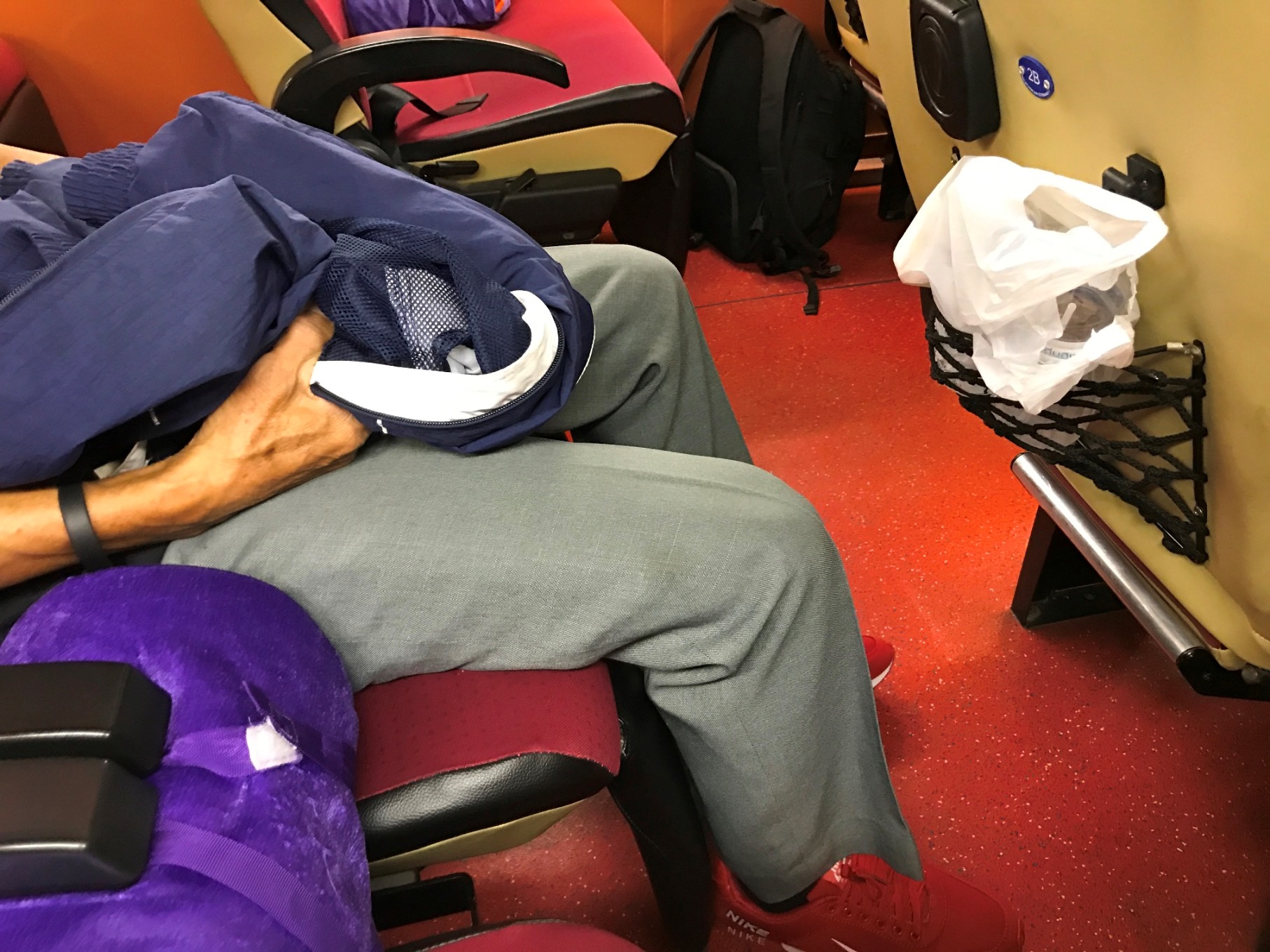 เบาะกว้างมีที่เสียบสายชาร์จ แต่ แต่ แต่ เสียค่ะใช้ไม่ได้ พอรถออกเราก็หลับกันไปตามทาง ตื่นอีกทีตอนเค้าแวะพัก ปรากฎว่า ปลายผ้าห่มเปียก เราก็เอ๊ะ ใครทำน้ำหกเหรอ เปล่าจ้า ท่อน้ำในห้องน้ำมันรั่ว น้ำเลยไหลเจิ่งนองทั้งคันรถ คนที่เอากระเป๋าวางไว้ที่พื้นก็ซวยไปดิ