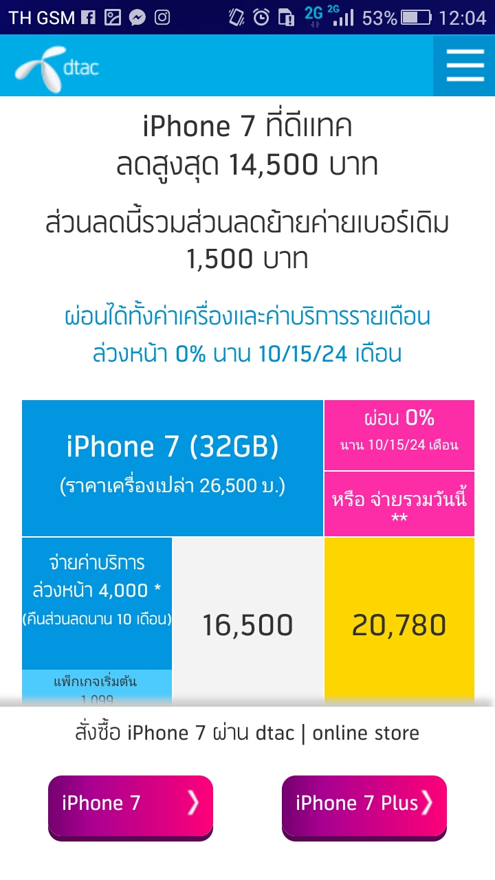สอบถามโปรโมชั่นซื้อ I phone 7 plus หน่อยค่ะ