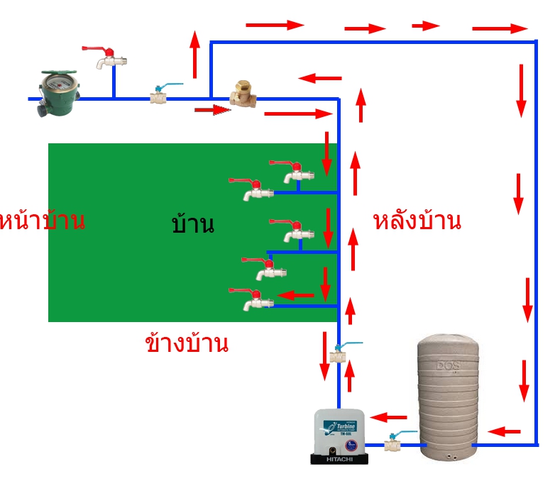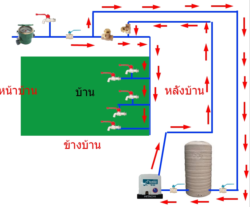 ต้องการติดตั้งปั้มน้ำไว้ด้านหลังบ้าน เพราะมีปลั๊กไฟสำหรับปั๊มน้ำอยู่บริเวณหลังบ้าน จะได้ไม่ค่อยได้ยินเสียงเวลาปั๊มทำงานครับ