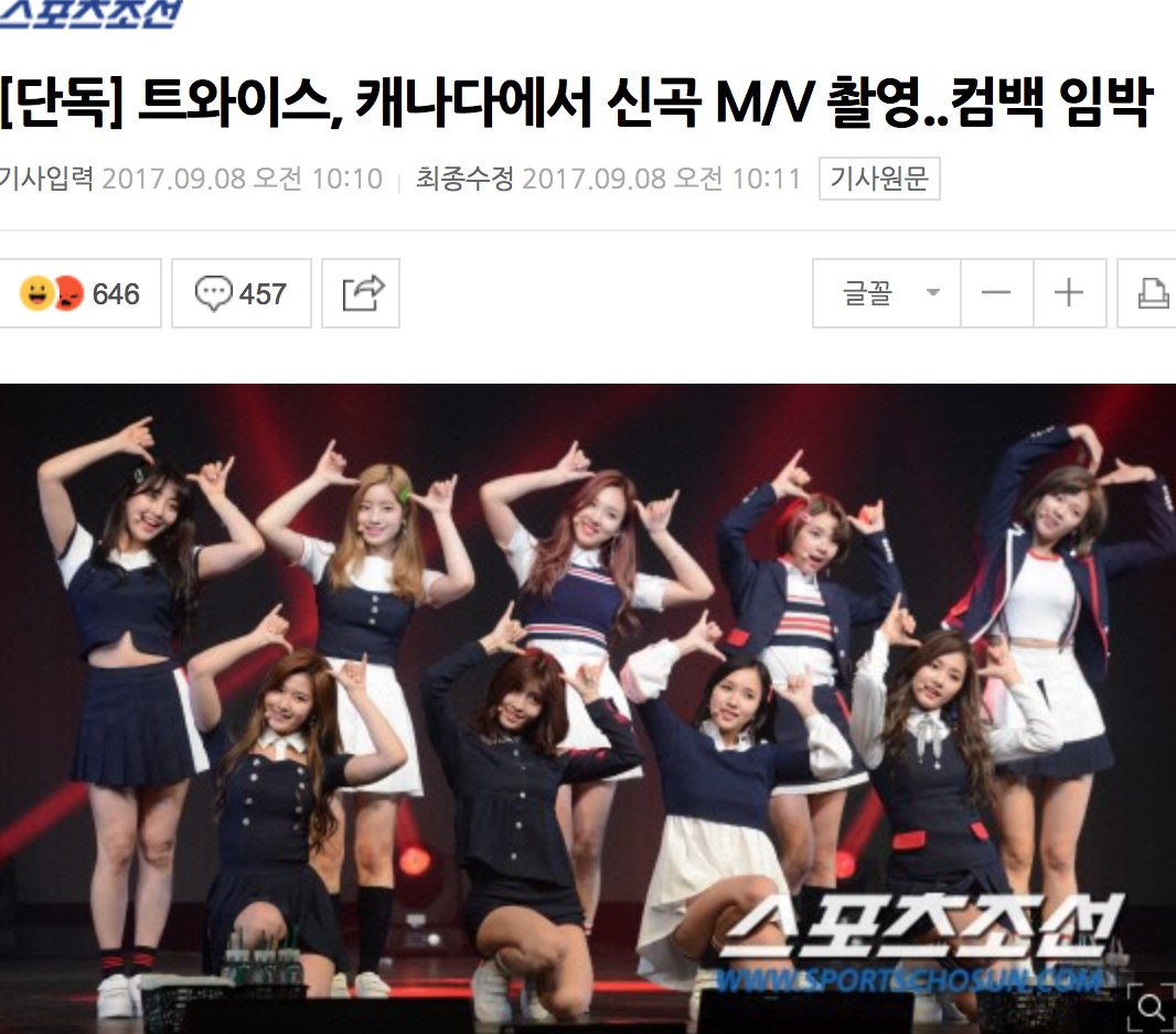 Naver : TWICE กำลังถ่ายทำ MV สำหรับเพลงใหม่ของพวกเธอที่แคนาดา .... comeback ใกล้เข้ามาแล้วสินะ