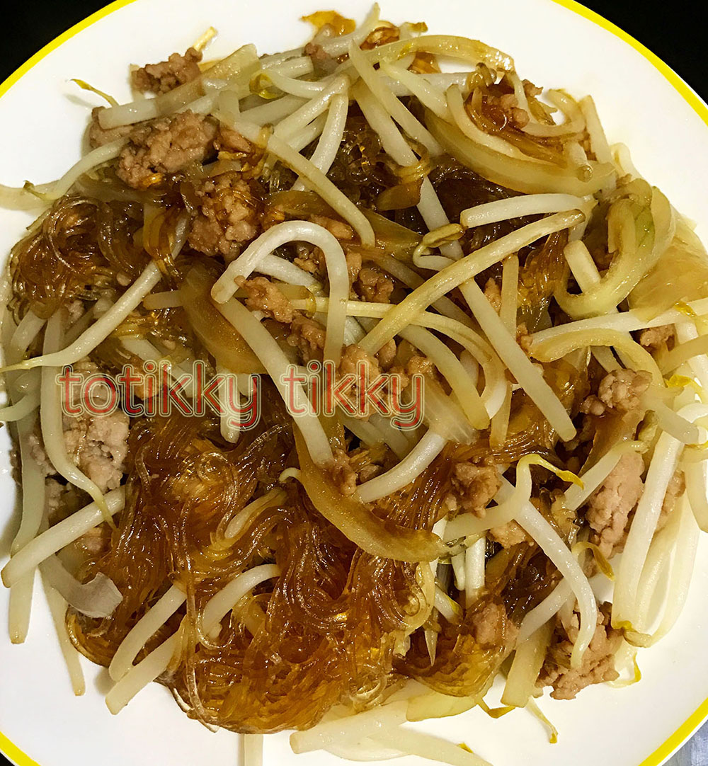 ผัดวุ้นเส้นใส่หมูสับใส่ถั่วงอก