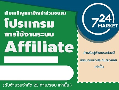สำหรับคนที่ผ่านการอบรม และมีเว็บไซต์ Affiliate สามารถคีย์ พ.ร.บ. หรือกรมธรรม์ทุกประเภท ที่แสดงอยู่บนเว็บ 724 ได้ตลอด 24 ชั่วโมง