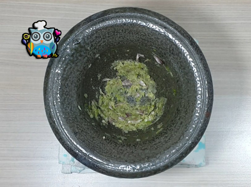 3.โขลกกระเทียม รากผักชี พริกไทยเม็ดให้ละเอียด