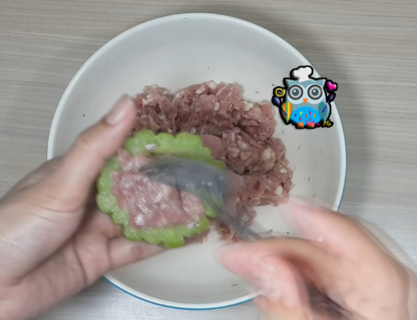 นำไปยัดใส่มะระที่ต้มเตรียมไว้
