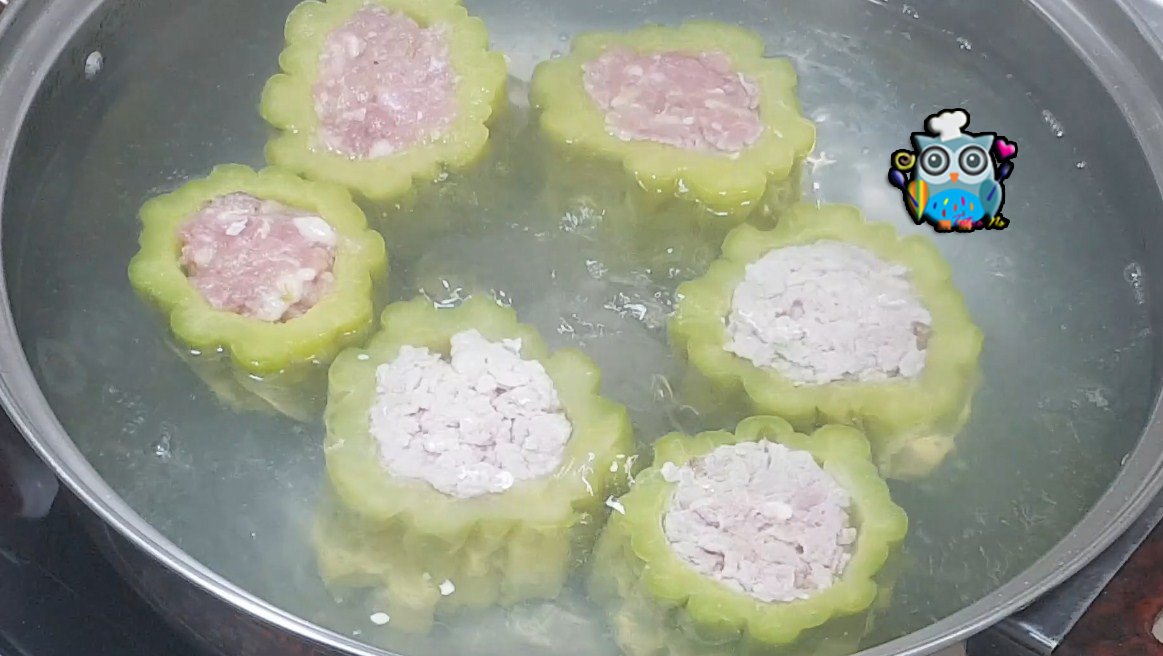 4.ตั้งน้ำให้เดือดใส่มะระที่ยัดไส้หมูสับลงไป