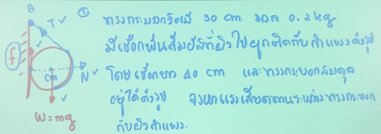 มุม เชือกกับ กำแพง = สองเท่า ของ 37 องศา (ตามที่โจทย์บอก เชือกสัมผัสกับผิวทรงกระบอก รูปเป็น 3 , 4 ,5 )