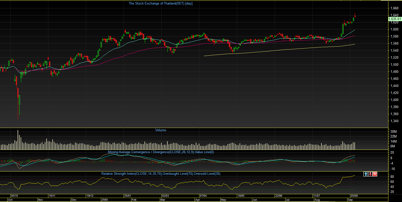 SET index TF Day : วันศุกร์ที่ผ่านมา ดัชนี SET index ยังคงพุ่งทะยานขึ้นไปอย่างต่อเนื่อง โดยได้ไปทำจุดสูงสุด ที่ระดับ 1646 จุด