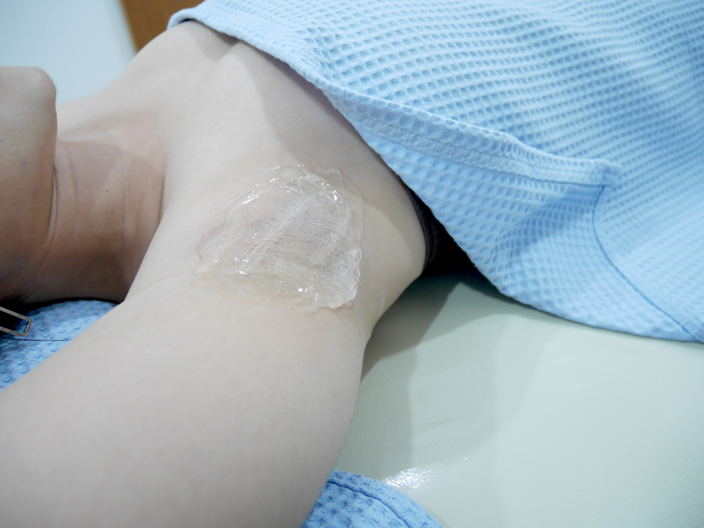 หลังจากโกนเสร็จ เช็ดทำความสะอาดแล้ว ก็จะทาด้วยเจลเย็นๆ ค่ะ เพื่อลดความเจ็บและการเสียดสี