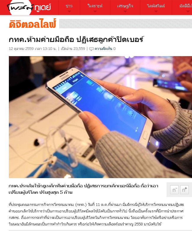-ดีแทคเสมอต้นเสมอปลายว่า ลูกค้าไม่ทันเกม ตอนนี้ใคร ๆ ก็รู้ว่า กทค.ห้ามค่ายมือถือ ปฏิเสธการยกเลิกเบอร์มือถือ ถือว่าเอาเปรียบผู้บริโภค ปรับสูงสุด 5 ล้าน ต้องให้บอกใช่ไหมว่า จะแจ้ง กสทช. กด 1200 ก็ได้คำตอบทันที!! และให้ดำเนินเรื่องใช่ไหม