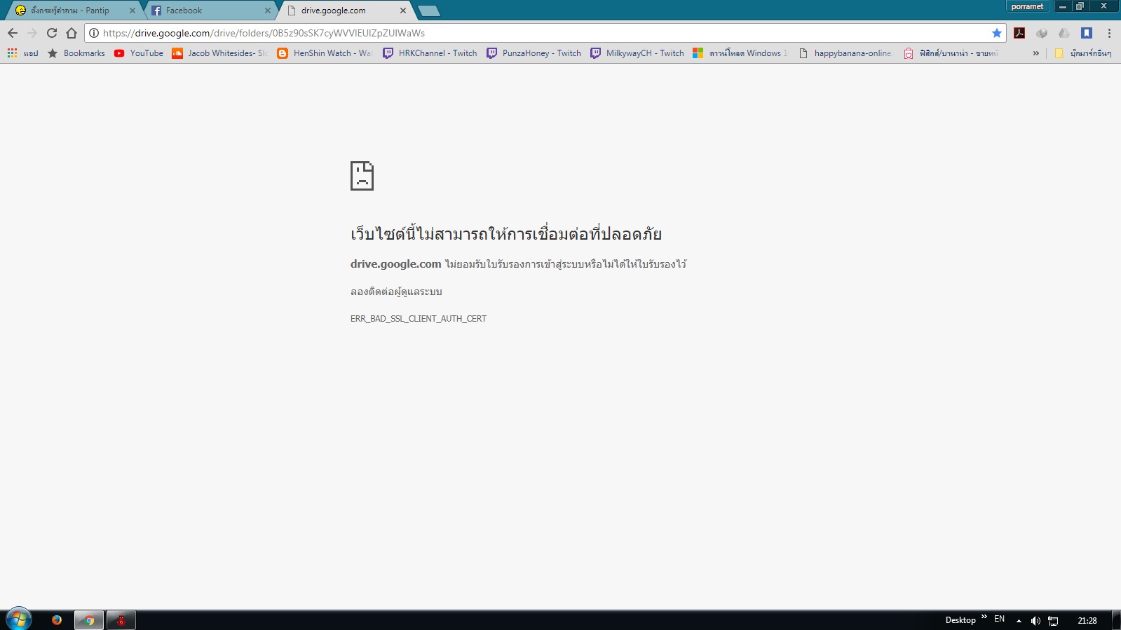 อยู่ๆก็เป็นไม่รู้ว่าเป็นเพราะอะไร เว็บทุกอย่างเข้าได้ตามปกติครับ มี ยูทูป กับ google drive เข้าไม่ได้
