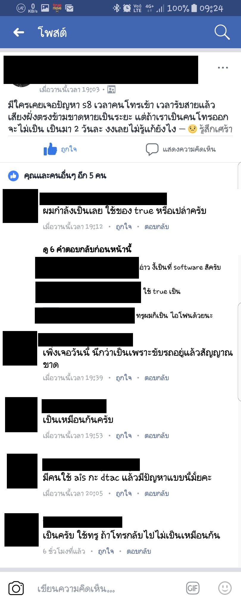 2 - 3 วันนี้ ใครใช้ True แล้วมีอาการสัญญาณโทรเข้าขาดๆหายๆบ้างครับ แต่ถ้าเป็นฝ่ายโทรไปจะปกติ ผมเป็นมา 2- 3 วันแล้ว