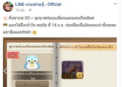 คงปิดปรับปรุงหลังเที่ยงคืน ก็คือขึ้นวัน ศุกร์ ที่ 15 นั่นแหล่ะ(เดานะ) อย่าลืมอัพจี้หรือแลกอะไรก่อนปิดปรับปรุงล่ะ แต่อีเว้นนี้คงไม่มีคนเล่นหรอกมั้ง
