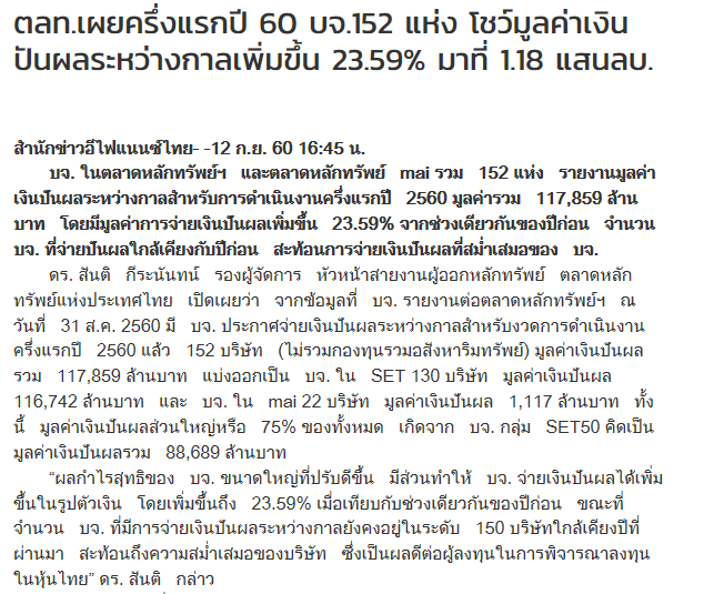 !!!... ครึ่ง ปี แรก ... SET .. รวย ขึ้น 23.59 % ... ปันผล 1.18 แสนล้าน .. อุ บร๊ะ ...!!!