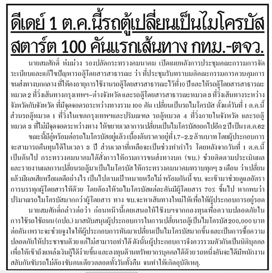 ดีเดย์ 1 ต.ค. 60 นี้ รถตู้เปลี่ยนเป็นไมโครบัส สตาร์ต 100คันแรก เส้นทาง กทม. - ตจว.