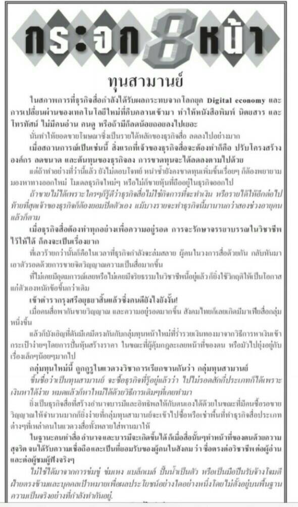 คอลัมน์กระจก 8 หน้าวิจารณ์ธุรกิจสื่อในยุคที่โลกก้าวเข้าสู่ Digital
