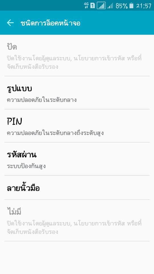เปลี่ยนการตั้งค่ารหัสผ่าน SAMSUNG A5 NEW ไม่ได้ครับ